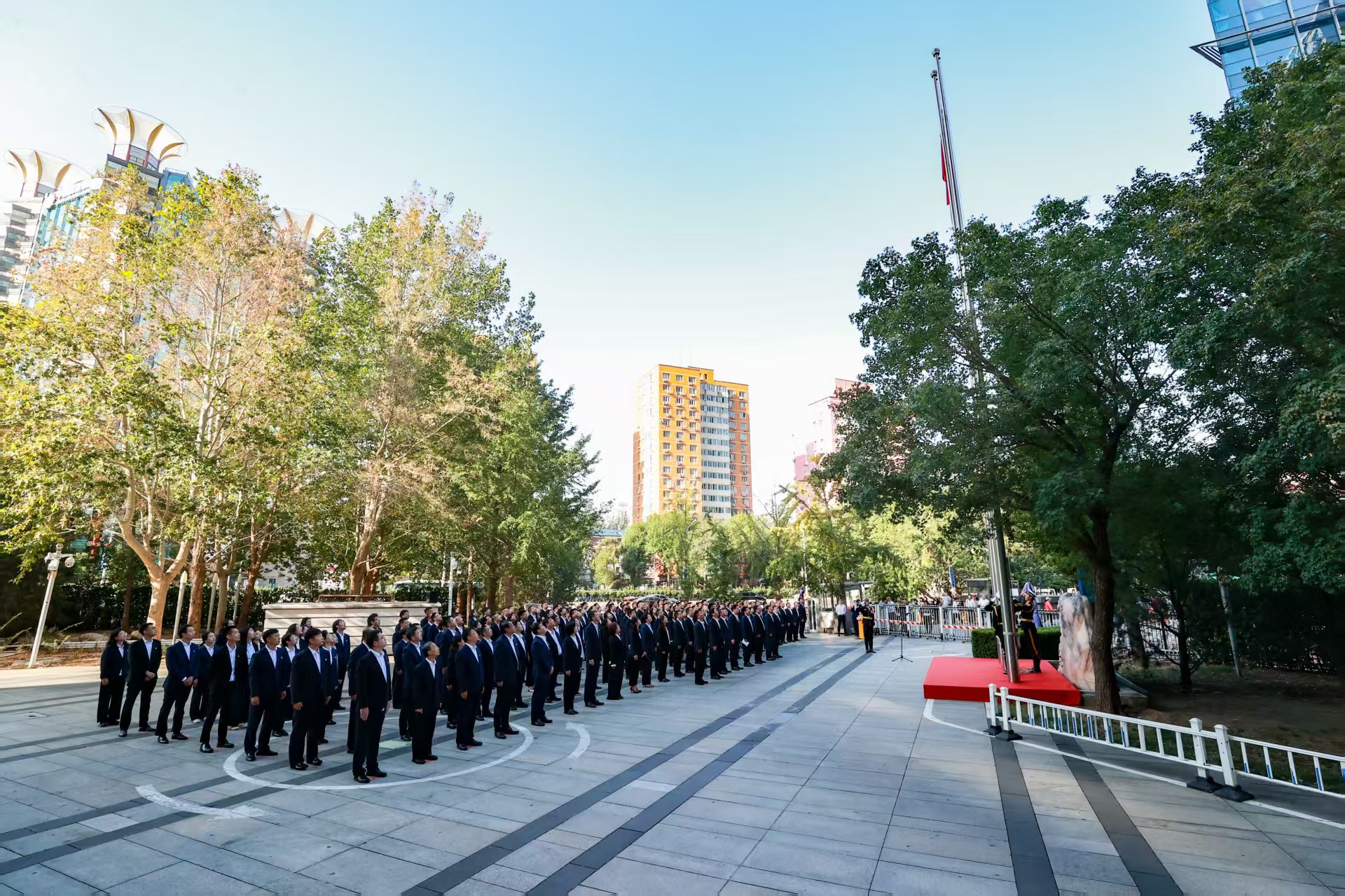 9月30日上午,中國中冶在中冶大廈隆重舉行升國旗儀式,慶祝新中國成立76周年。集團公司黨組成員、副總經(jīng)理,中國中冶黨委書記、董事長陳建光出席并講話,中國中冶黨委副書記閆愛中主持。